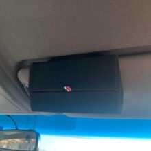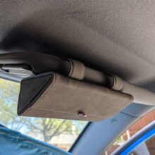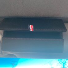 This sunglass holder is super useful. I always have prescription sunglasses in my purse, but when my fiancé rides my car he never remembers to bring sunglasses and any pair that I keep in the car always ends up following him back inside or he loses them. I got this so that I can always keep a spare pair of sunglasses in the car. I did find it’s a little cumbersome because the clips are too widespread so in order to have it not block the passenger visor mirror I need to have it hanging off the visor a bit.